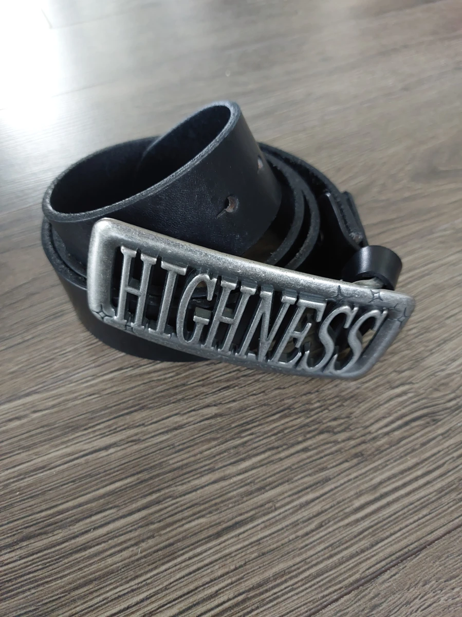 Nowy pasek do spodni skórzany z dużą klamrą.